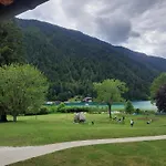 Апартаменты Haus Steinthaler Stockenboi предлагают насладиться закатом на берегу озера, расположенного в 10 минутах ходьбы.